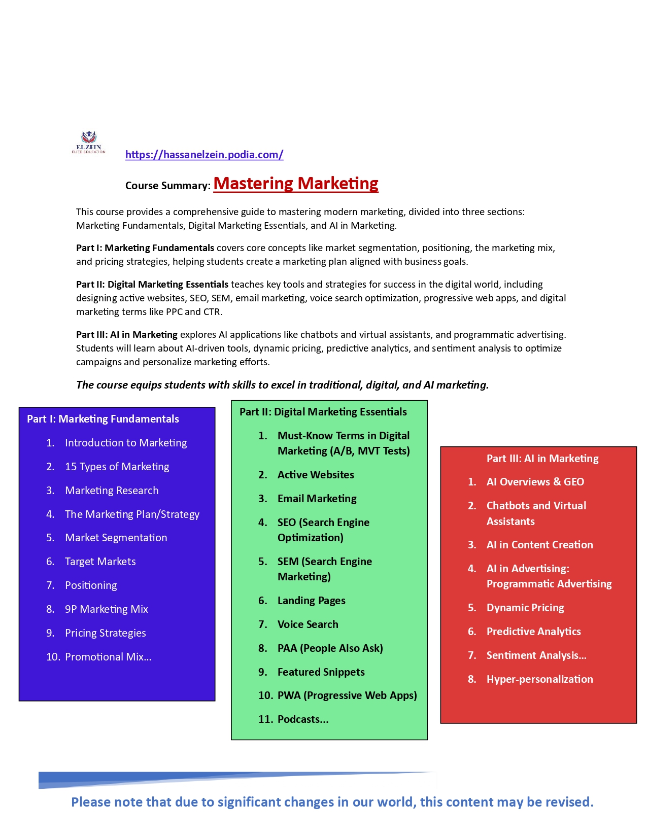 This course offers:
