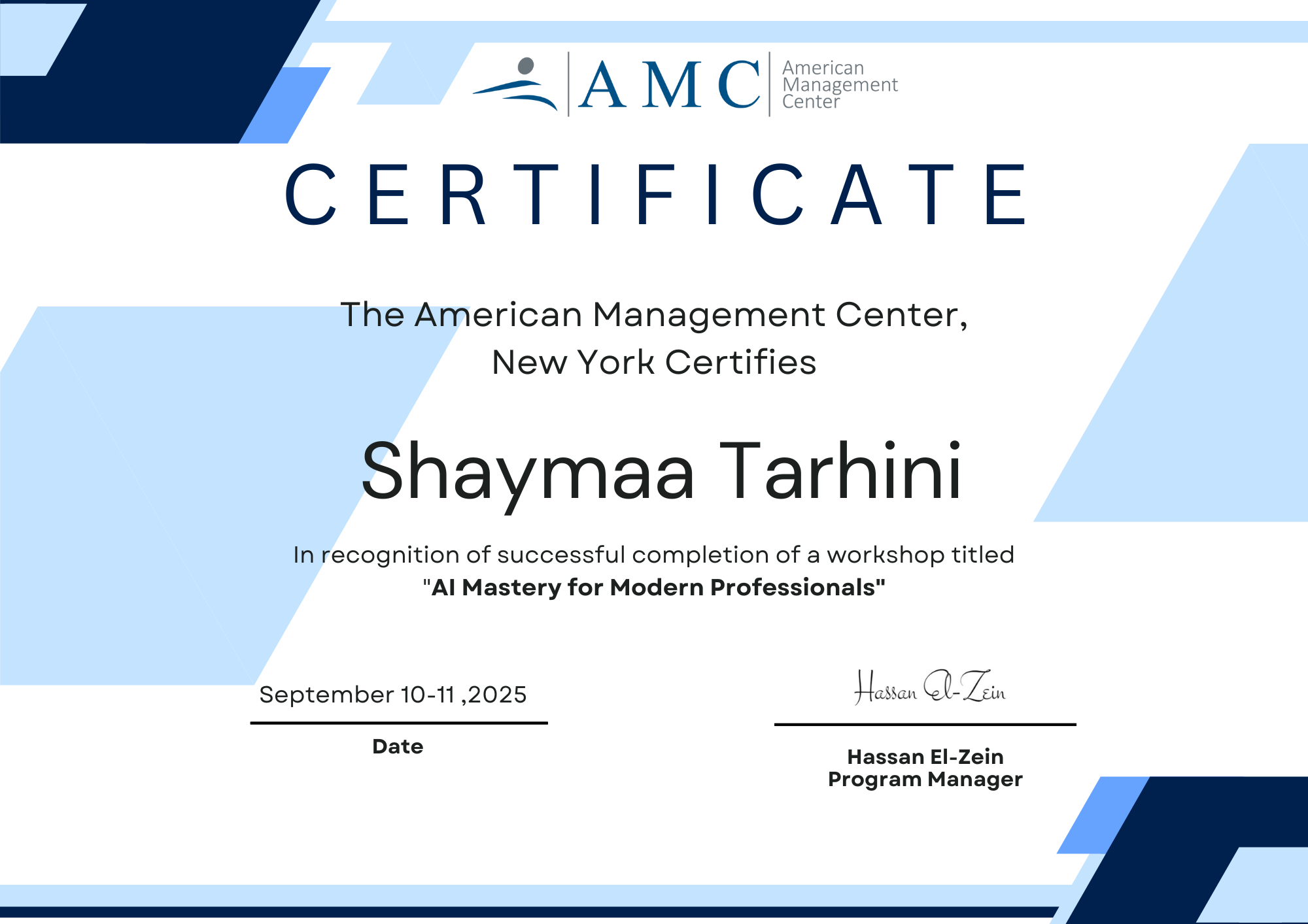 AMC, American Management Center, is a consulting and training firm whose mission is to contribute toward the organization and management development of both governmental and non-governmental organizations. Its main purpose is to meet the unique competencies and skills needs of businesses and organizations throughout the region.